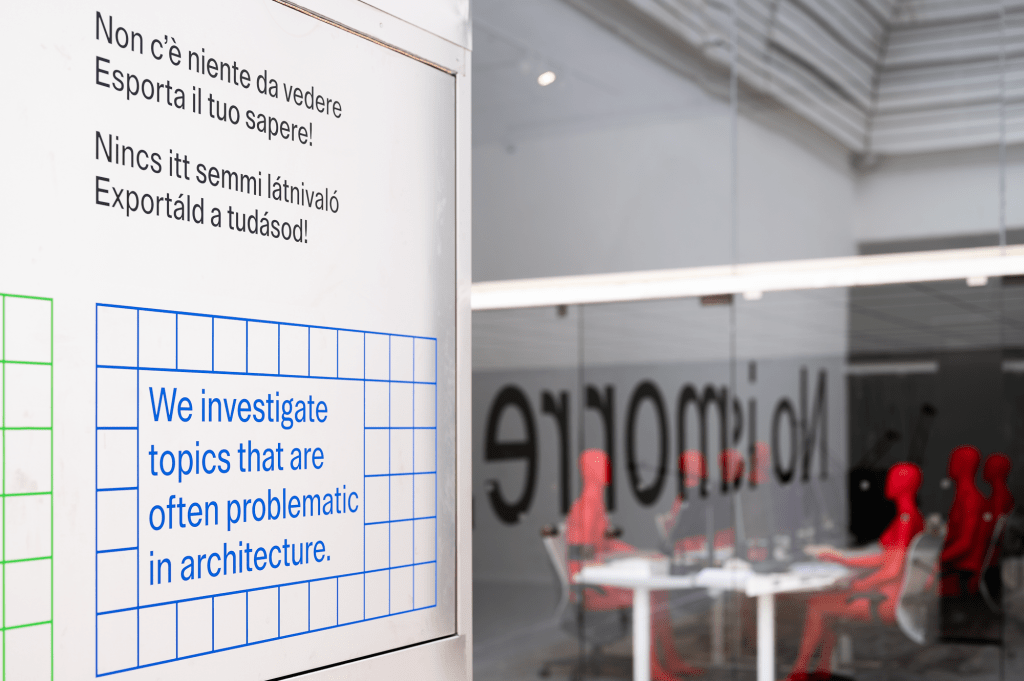 La narrazione è semplice: l’architettura non è uguale all’industria edile. Attraverso la mia ricerca per la tesi di dottorato, ho scoperto che gli architetti attribuiscono il merito a molte storie di “abbandoni” o di “ricerca di carriera”. Ho creato un filtro di base prima di decidere di iniziare a raccogliere le storie: i loro progetti sono noti a livello internazionale, hanno studiato o praticato architettura, non c’è sovrapposizione tra le “discipline di esportazione” e vivono in Ungheria. Quindi, tutto è iniziato con i progetti. Ho contattato gli organizzatori, li ho invitati a partecipare e hanno accettato. Poi, il mio piccolo team curatoriale (composto da due miei ex studenti, András e Ingrid) ha dovuto mantenere unito questo folto gruppo di personalità di alto livello, che erano espositori, dietro una narrazione rigorosa, in linea con la premessa del titolo. È stata una collaborazione eccezionale tra il team curatoriale e gli espositori, ed è ancora incredibile che siamo riusciti a farlo senza compromessi. È straordinario.